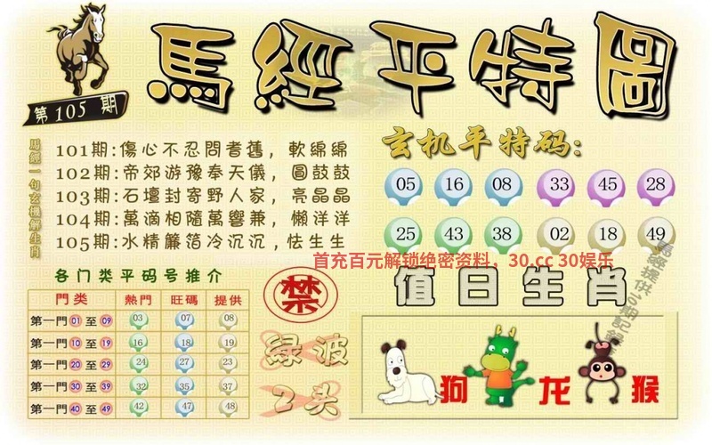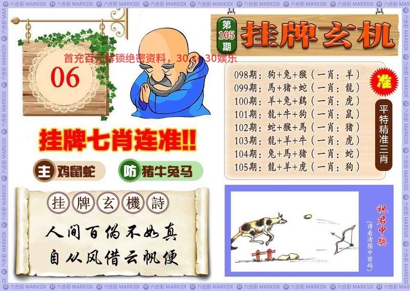 105期:绝杀三肖【狗-虎-羊】特开狗44错 |